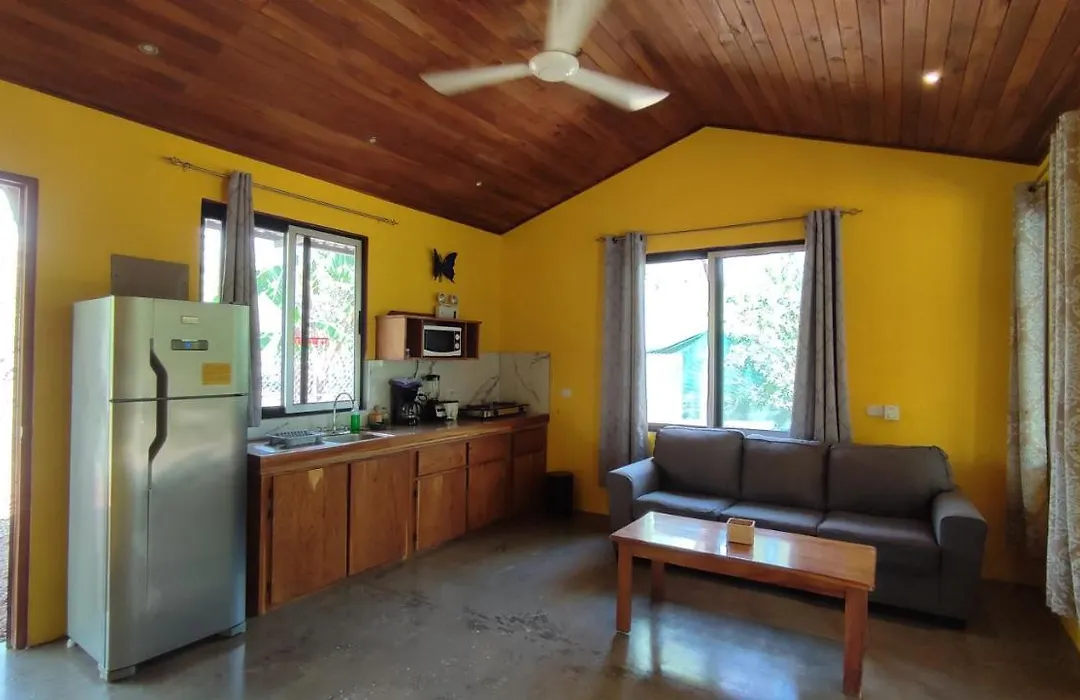 There is an equipped kitchen outfitted with coffee and tea makers, a fridge, and glassware. Guests can easily reach Nosara airport, located 16 miles from the 1-bathroom villa.